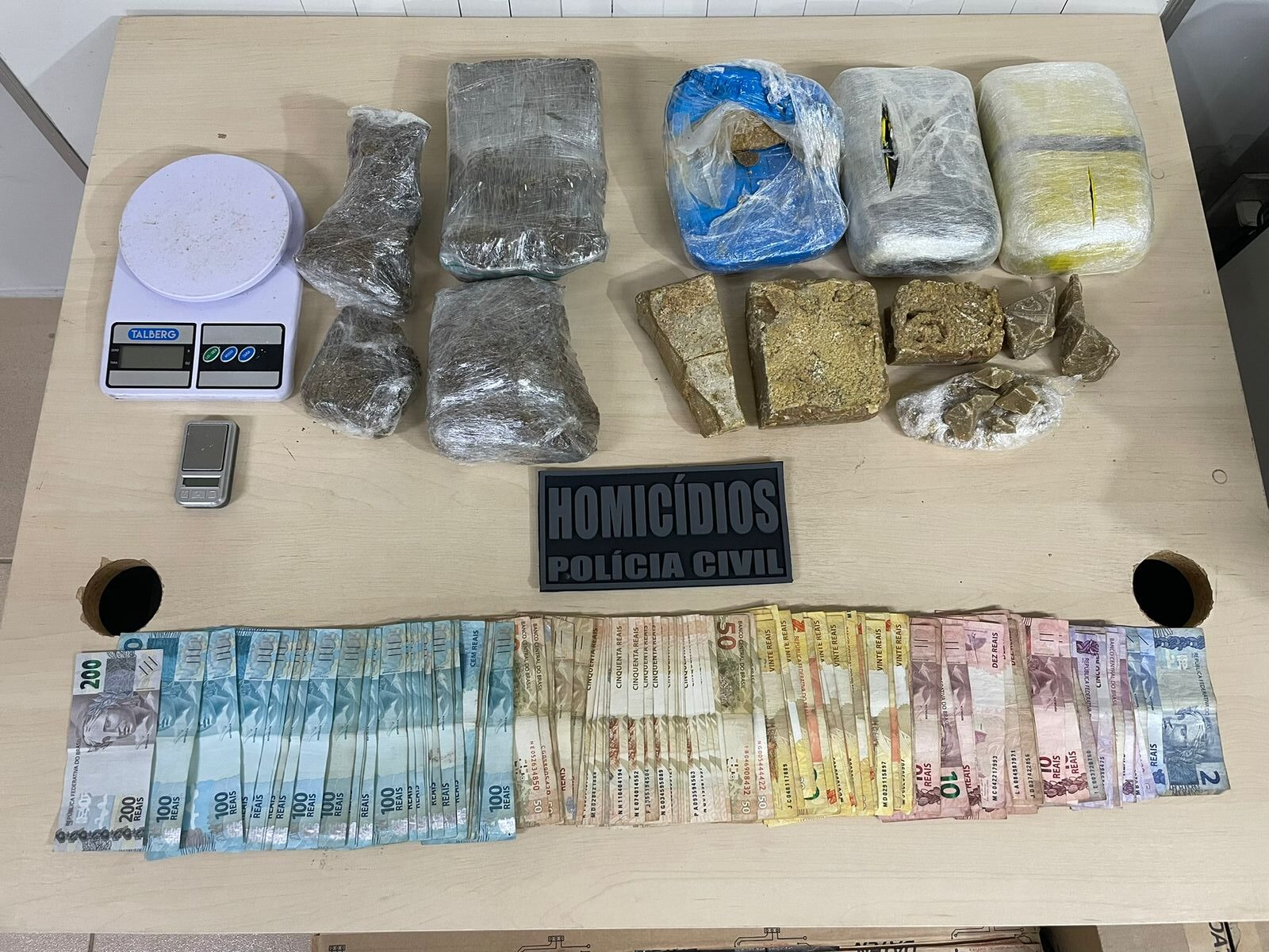 Durante as diligências, os policiais identificaram a placa do veículo usado no atentado e conseguiram localizá-lo antes da meia-noite em uma residência no bairro Equatorial. No local, os suspeitos já haviam fugido, mas deixaram o carro, aproximadamente 4,2 kg de pasta base de cocaína, cerca de 2 kg de skunk, mais de R$ 6 mil em dinheiro, balanças de precisão, celulares e materiais usados no preparo e fracionamento de drogas. O veículo, que era alugado, e todo o material foram apreendidos e encaminhados para a DGH. A Polícia Civil segue investigando o caso para localizar o autor dos disparos e possíveis envolvidos.