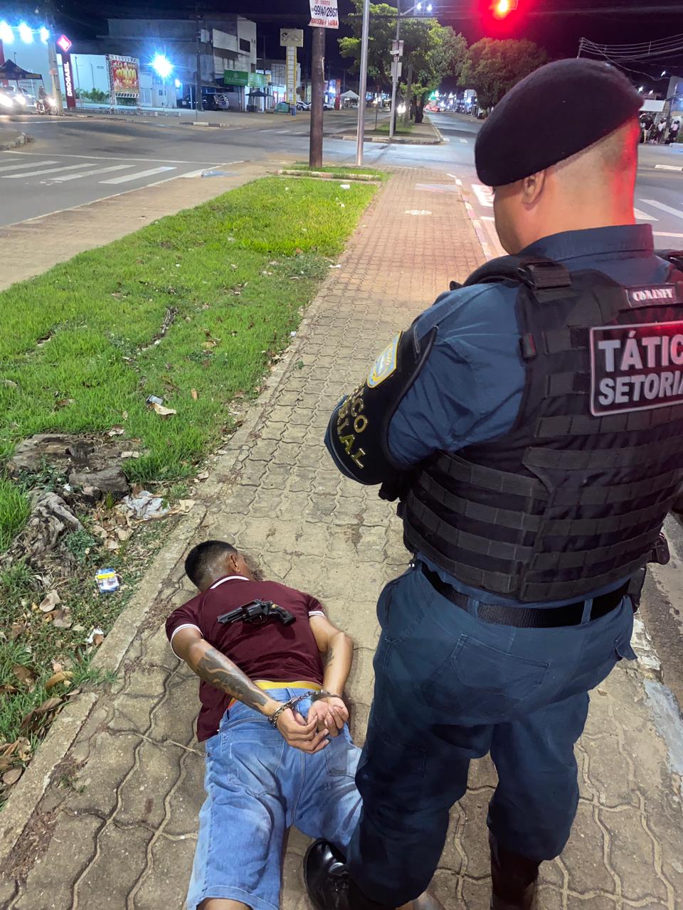 Durante patrulhamento por volta das 00h50, os policiais abordaram A.S.S., 27 anos, e V.J.S., 19 anos, que demonstraram nervosismo ao avistar a viatura. Com A.S.S. foram encontrados dois invólucros de drogas, aparentando ser pasta base de cocaína e crack. Já V.J.S. portava sete invólucros de substância semelhante à cocaína e um revólver calibre .38, carregado com cinco munições.