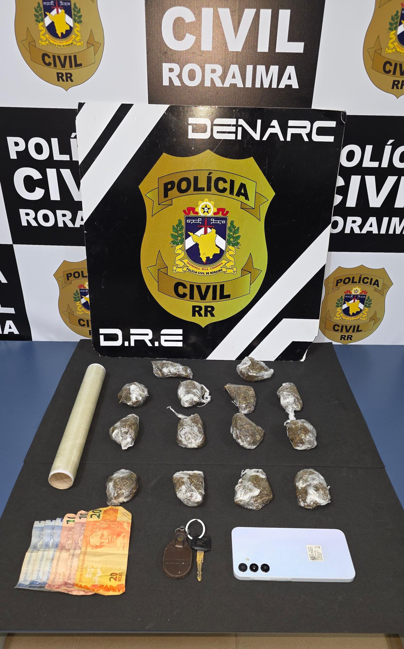 Uma ação integrada da Polícia Civil de Roraima, por meio do Departamento de Narcóticos (DENARC) e da Delegacia de Repressão a Entorpecentes (DRE), resultou na prisão em flagrante de S.M.F., de 25 anos, suspeito de envolvimento com o tráfico de drogas. A operação foi deflagrada na segunda-feira (21), no bairro Caimbé, zona oeste de Boa Vista, após investigações que apontaram que o homem utilizava a própria residência como ponto de venda de entorpecentes e realizava entregas a domicílio, operando um esquema conhecido como “disque-drogas”.